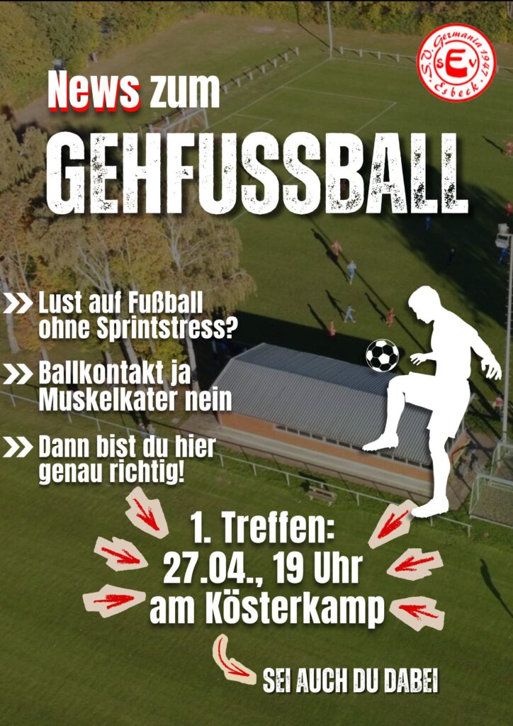 1. Treffen für das neue Gehfußball-Team am 27. April um 19.00 Uhr am Kösterkamp / Sei dabei !!!