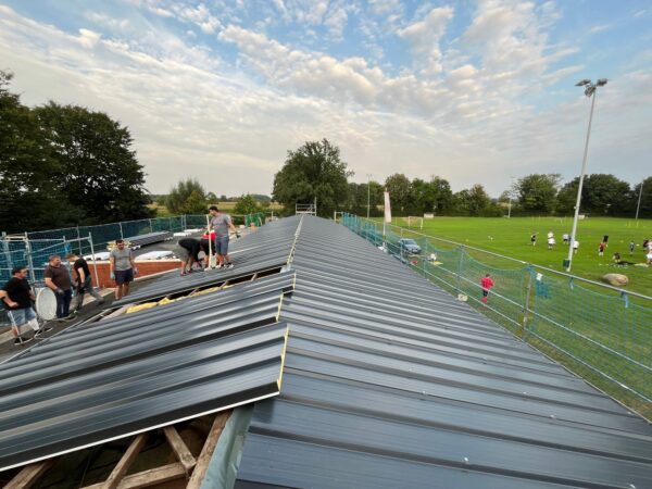 Die alten Zementplatten auf dem Dach wurden entfernt und durch moderne Sandwichplatten ersetzt – nahezu komplett in Eigenleistung durch unsere Mitglieder. Dieses Projekt hat gezeigt, wie stark wir als Gemeinschaft zusammenstehen und wie viel Engagement in unserem Verein steckt.