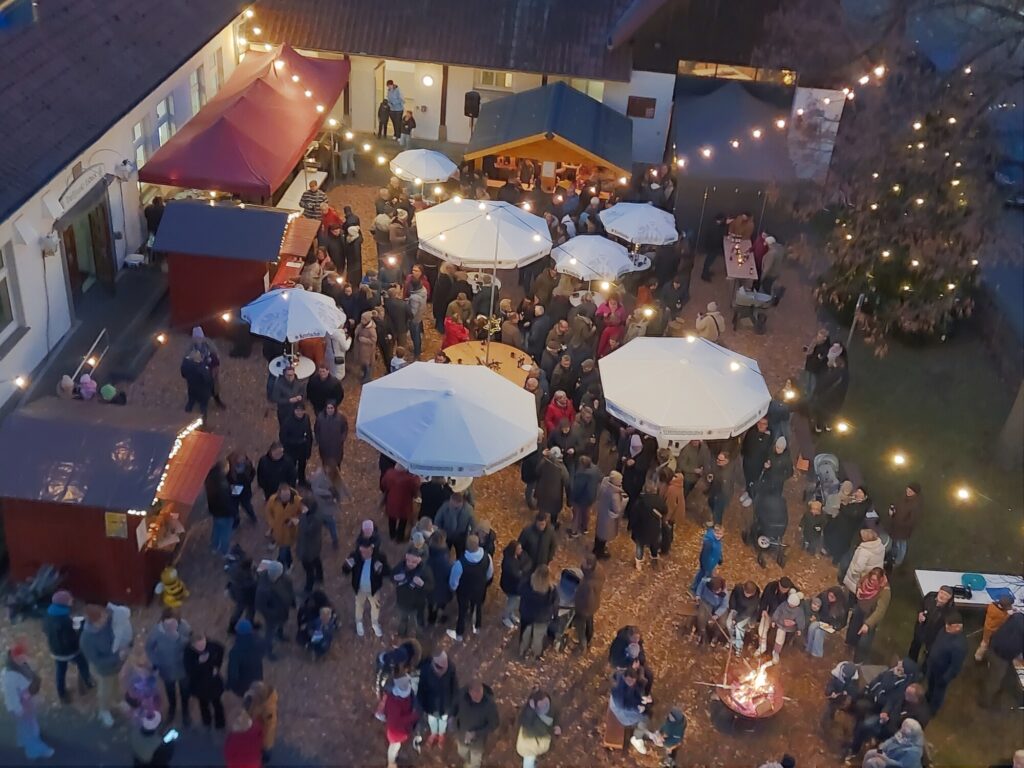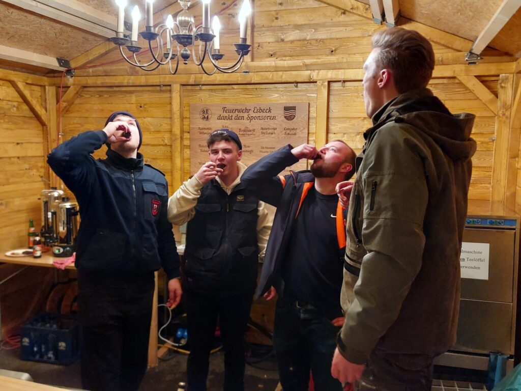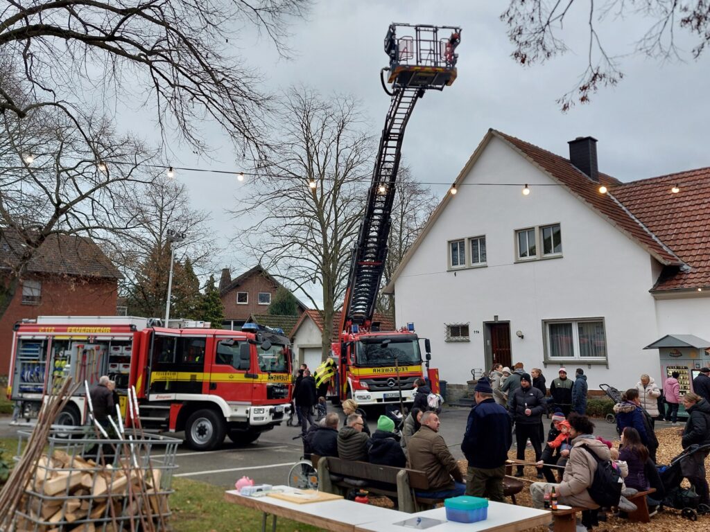 Adventliche Weihnachtsmarktatmosphäre, gepaart mit leckerem Duft von Grill, Reibeplätzchen und Glühwein, lockte wieder einmal viele Esbecker- und -innen zur Alten Schule. Begrüßt wurden die ankommenden Gäste „feuerwehrkonform“ durch einen Leiterwagen der Feuerwehr Lippstadt und dem LF10 der Esbecker Feuerwehr. Großzügig ausgeteiltes Rindenmulch sorgte für nicht einfrierende Füße. Für dennoch frierende Besucher-innen stand auch noch ein -gern genutztes- Lagerfeuer zum Erwärmen zur Verfügung.